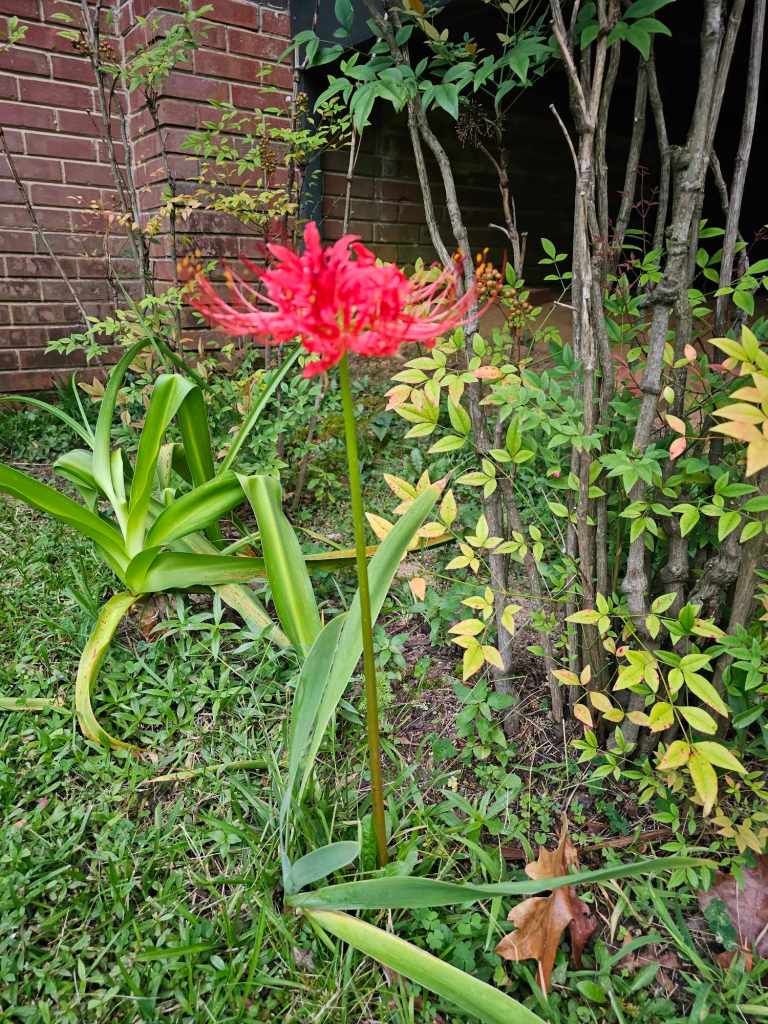 I have seen the stem of these red spider lilies for a few weeks. I really didn’t know what they were. It’s like they came up out of nowhere. I was pulled in by their beauty. In various cultures they are associated with death and rebirth.