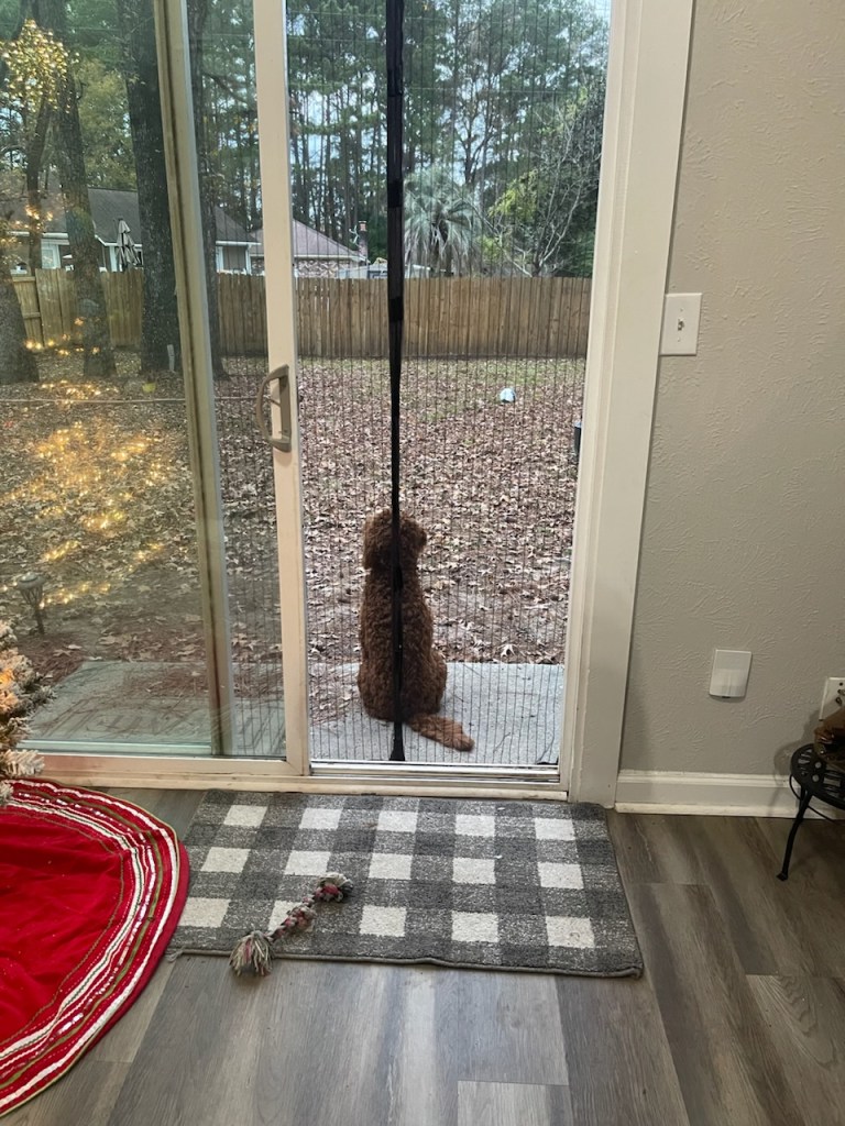 Oftentimes, I find Ivy staring outside. For having a dog, most of us would think this means she needs to potty, but not exactly. When I open the back door, during these times, she sticks her nose through the mosquito net or sits on the back patio. She sits, in what seems to be pure contentment, just staring at the trees and listening to the sounds. I like to wonder what she is thinking about or what she can hear that I can’t. Being still is one of the things I struggle with most, so in these moments, she is a great reminder to just sit and be.
