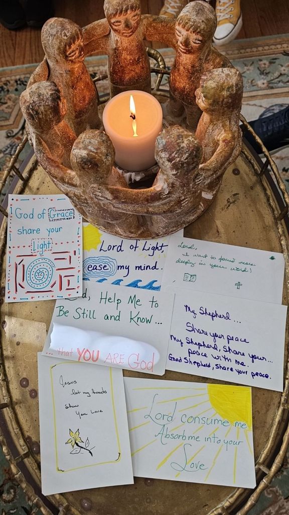 Our Ecumenical Contemplative Prayer Group met today. We learned about, practiced, and developed our own breath prayer. We used Ron DelBene’s book, “The Breath of Life, A Simple Way to Pray,” as a resource and guide. If you are interested in learning more about this spiritual practice, click here for a free PDF of this book.